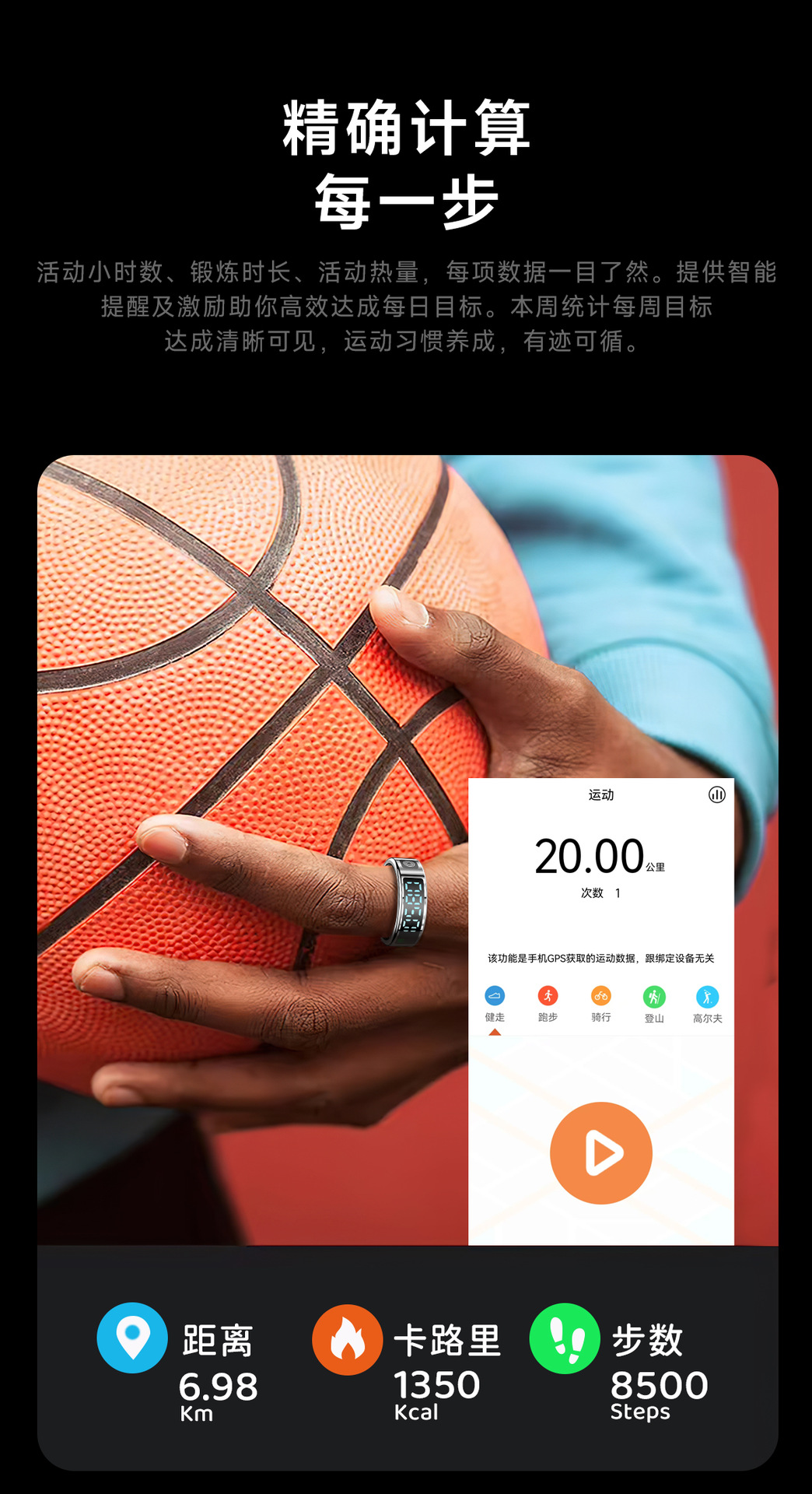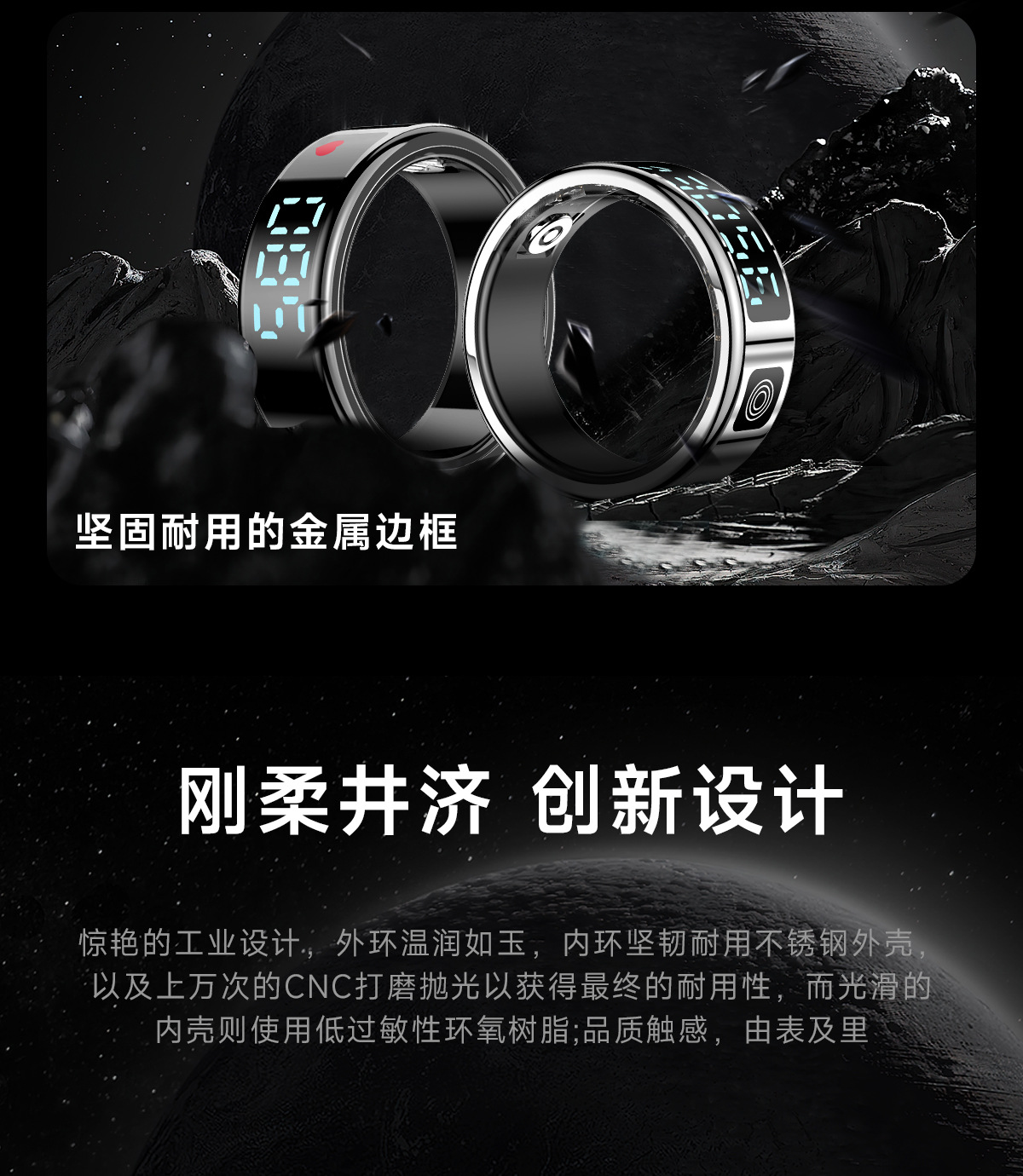 Core manufacturing technology, the ring thickness can be as thin as 2.3MM and width 5.8MM.The 300 million smart ring ordinary model has a thickness of 2.6MM, and the market competitors are basically 3.0MM
